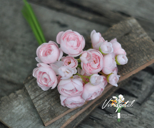 One bundle light pink artificial silk rose/mini ranunculus/6stems individual stems silk ranunculus buds/best for home decoction and wedding designing