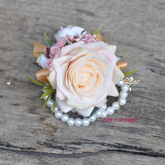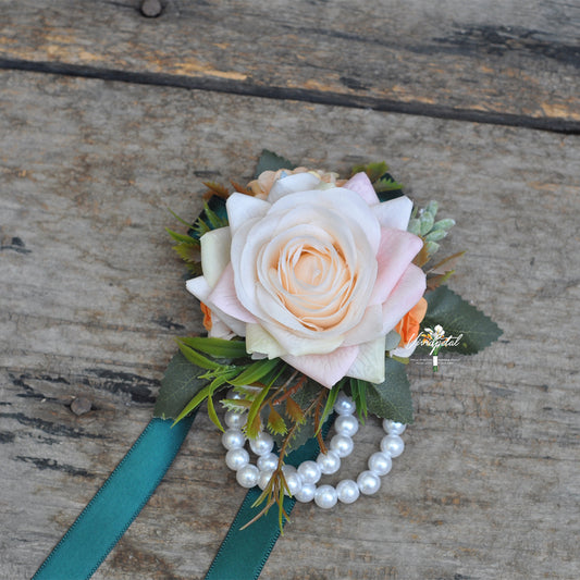 Apricot rose Wrist corsage/ rose corsage/mother corsage/pearl corsage/bridesmaids corsage/rustic wedding corsage /boutonnieres/pin corsage