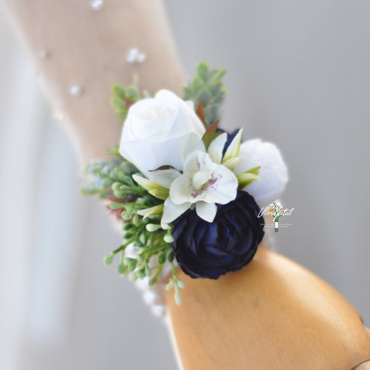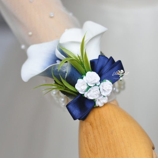 Wrist corsage/Navy rose lily corsage/mother corsage/bridesmaid corsage/flower girl corsage/wedding corsage/botanical pearl corsage/rustic corsage