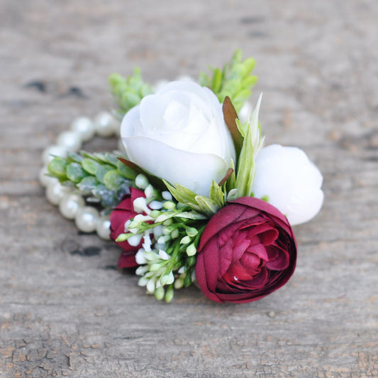 Wine red rose corsage/wedding corsage/rose corsage/botanical pearl cordage/rustic corsage/best for wedding ,bride shower, anniversary