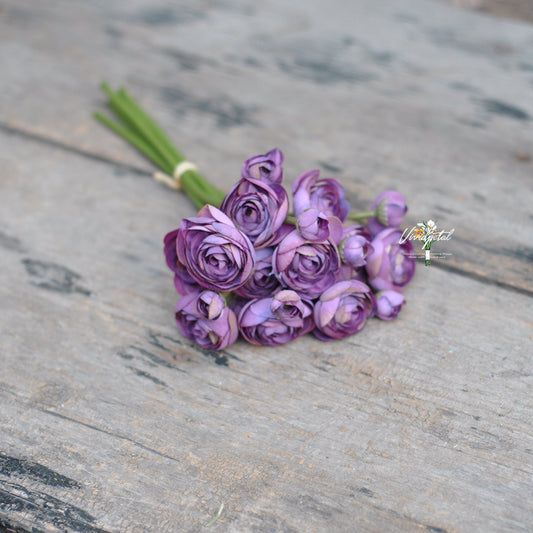 One bundle royal purple artificial silk rose/mini ranunculus/6stems individual stems silk ranunculus buds/best for home decoction and wedding designing