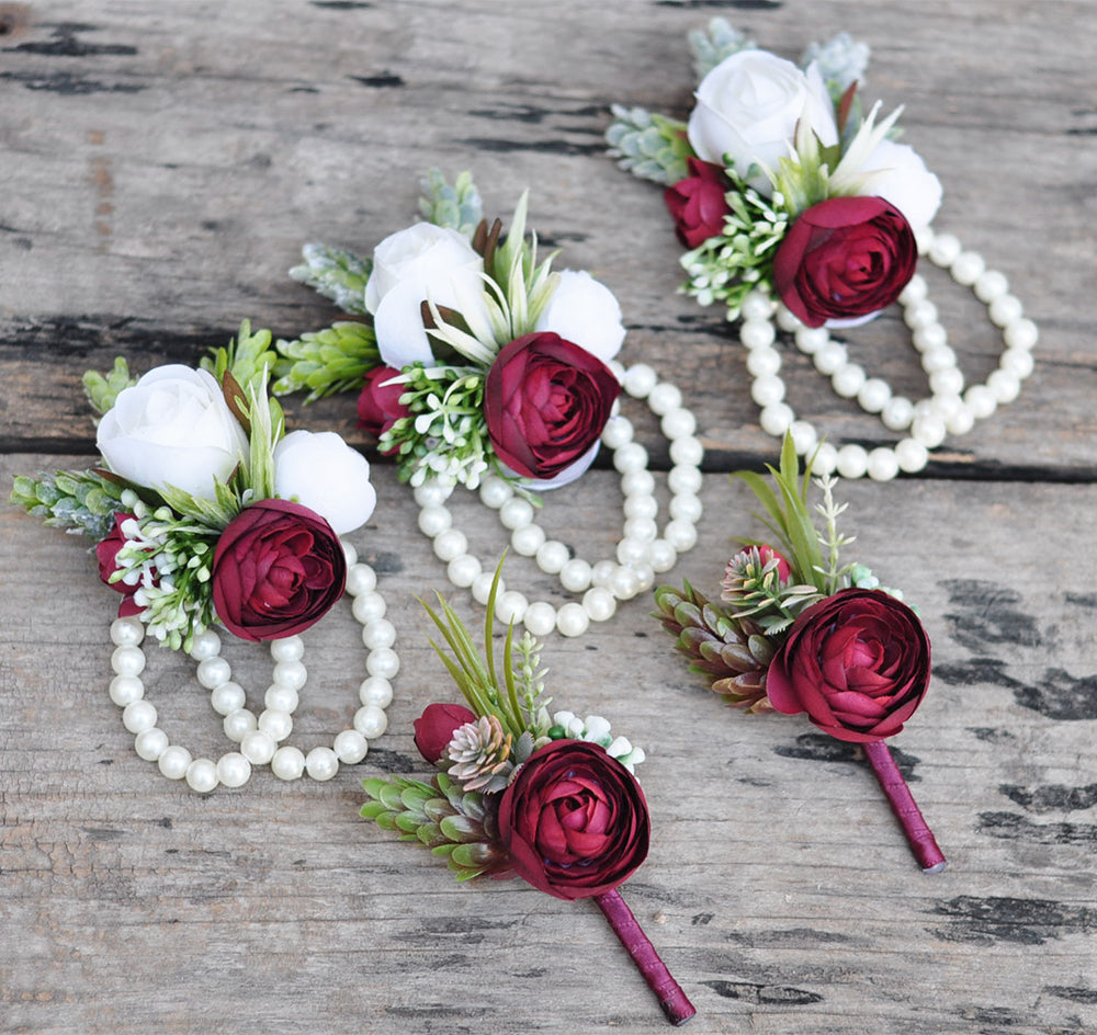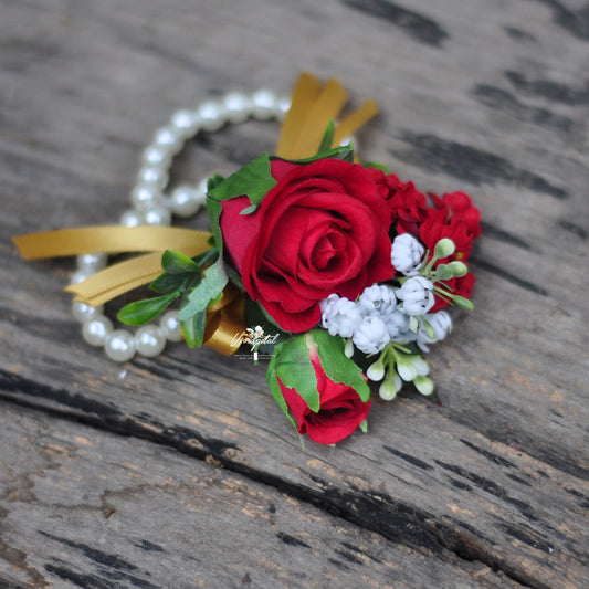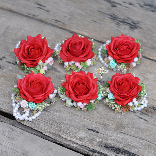 Country style Wrist corsage/real touch red rose corsage/country corsage/mother corsage/pearl corsage/bridesmaids corsage/rustic wedding corsage /boutonnieres/pin corsage