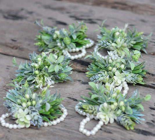 Foliage corsage/rustic grass corsage/mother corsage/spring wedding corsage/pearl bracelet corsage/full green corsage