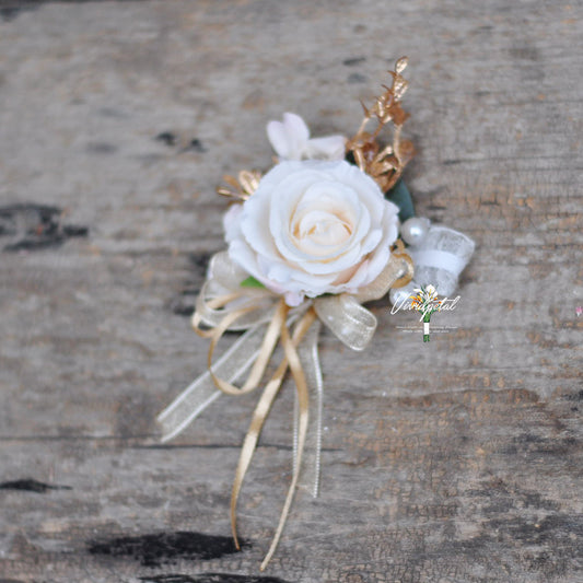 Classical gold theme Wrist corsage/ rose corsage/wedding corsage/mother corsage/pearl corsage/bridesmaids corsage/rustic wedding corsage /boutonnieres/pin corsage