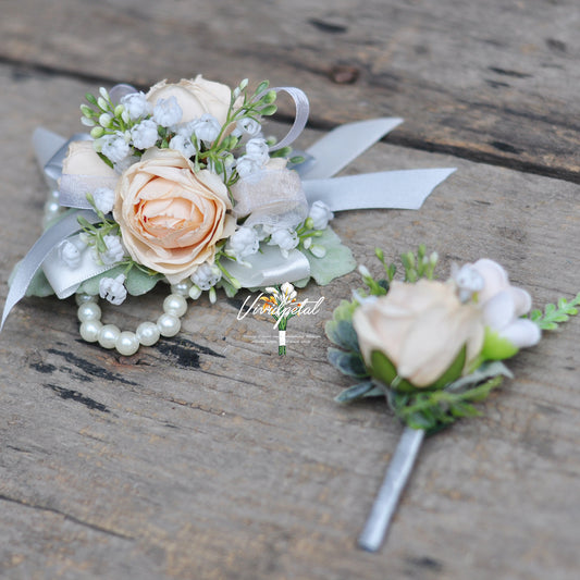 Fantastic champagne rose corsage/wrist corsage/ivory baby's breath corsage/mother corsage/pearl corsage/bridesmaids corsage/rustic wedding corsage /boutonnieres/pin corsage