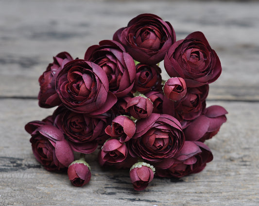 One bundle burgundy wine red artificial silk rose/mini ranunculus/6stems individual stems silk ranunculus buds/best for home decoction and wedding designing
