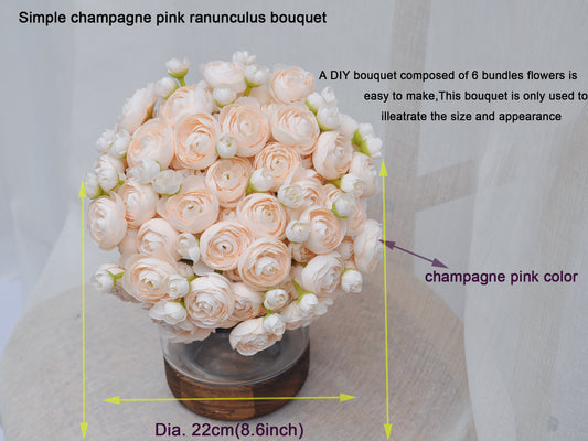 One bundle champagne artificial silk rose/mini ranunculus/6stems individual stems silk ranunculus buds/best for home decoction and wedding designing