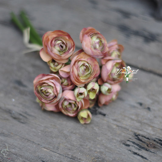 One bundle vintage color artificial silk rose/mini ranunculus/6stems individual stems silk ranunculus buds/best for home decoction and wedding designing