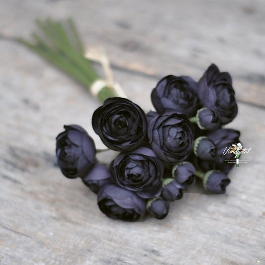 One bundle black artificial silk rose/mini ranunculus/6stems individual stems silk ranunculus buds/best for home decoction and wedding designing