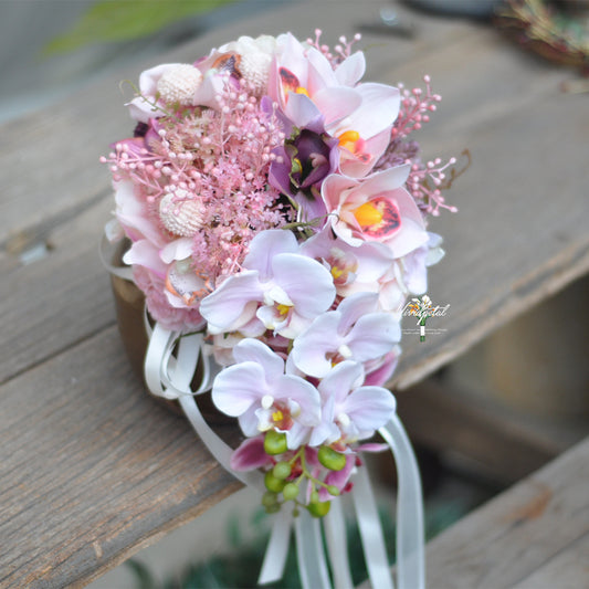 Real touch blush butterfly orchid bouquet/rustic bouquet/bridal bouquet/bridesmaid bouquet/lily bouquet best for outdoor wedding