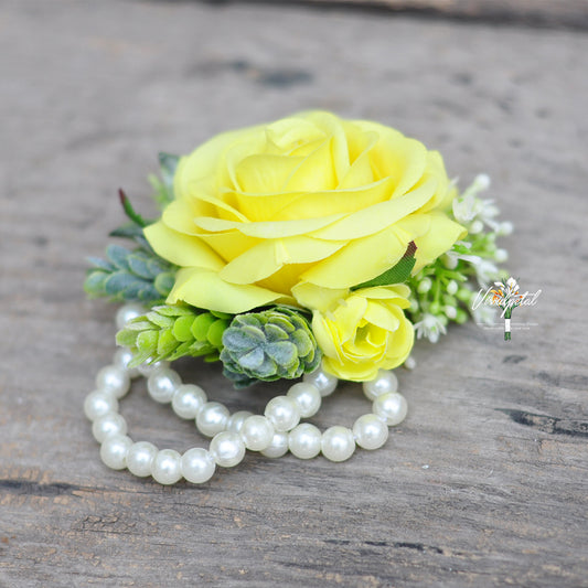 Wrist corsage/real touch bright yellow rose corsage/choose ribbon colors corsage/mother corsage/pearl corsage/bridesmaids corsage/rustic wedding corsage /boutonnieres/pin corsage