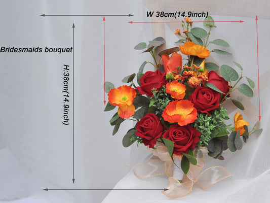 Silk foam rose wild bouquet/silk poppy bouquet/Silk eucalyptus bouquet/Autumn wedding bouquet/rustic wedding bouquet set/flower bouquet for home decoration and wedding