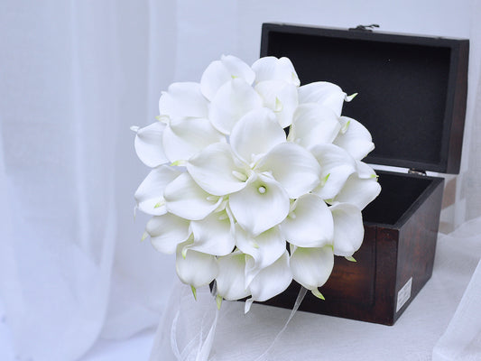 Real touch white calla lily bouquet/Pearl center bouquet/Rustic calla lily bouquet/Bridal bouquet/bridesmaids bouquet