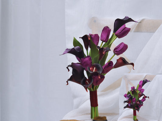 Real touch black purple tulip calla lily bouquet, best for home/office/bath/table/centerpiece ,gift for her