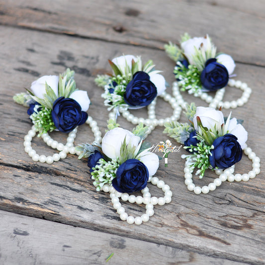 Wrist corsage/Navy rose corsage/mother corsage/bridesmaid corsage/flower girl corsage/wedding corsage/botanical pearl corsage/rustic corsage