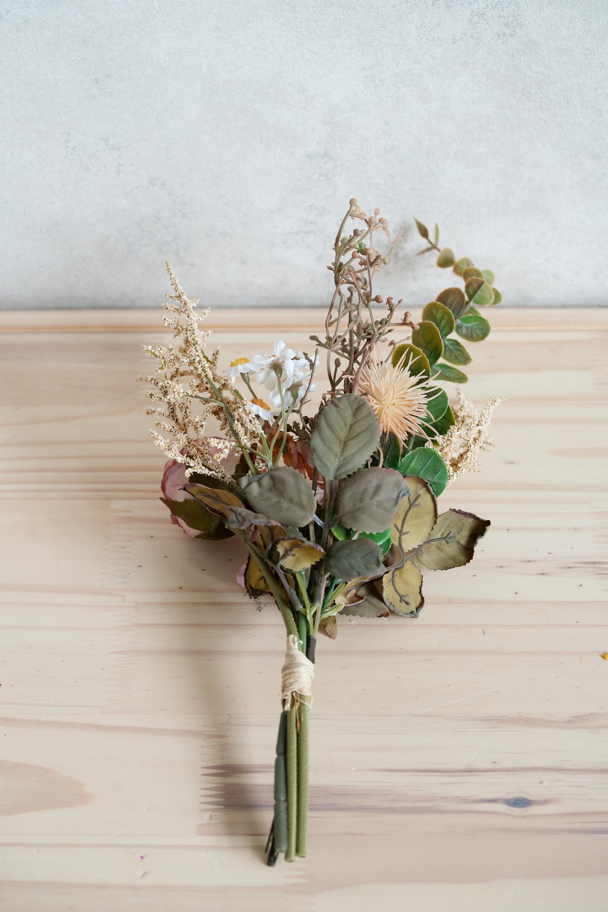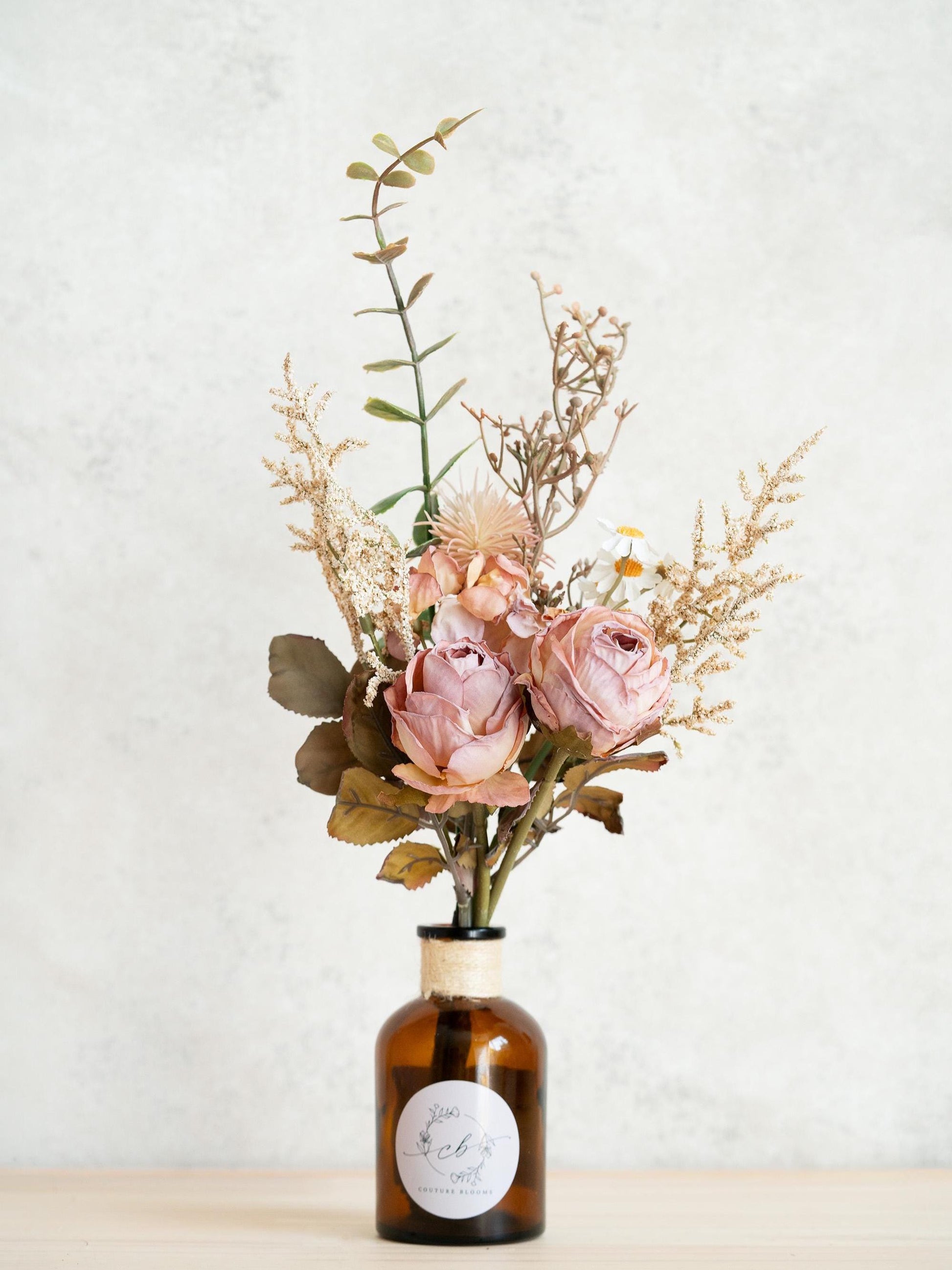 ❤ This silk mini bouquet features vintage mini autumn-fade roses and retro-style peonies.