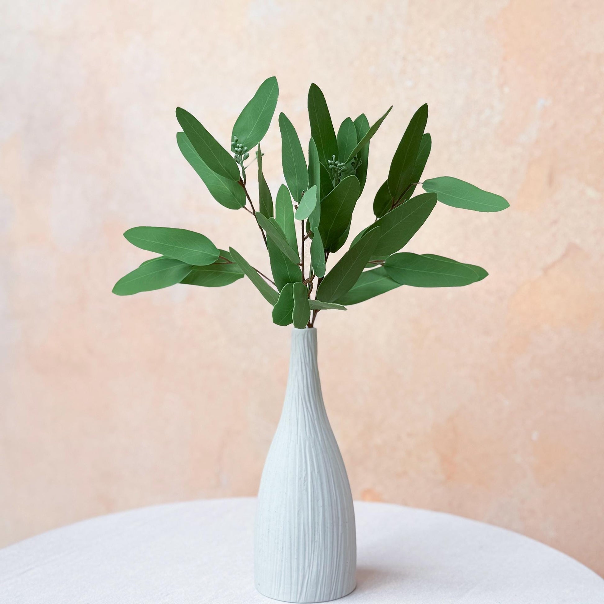 ❤ This silk bundle features artificial eucalyptus branches with a 3D-printed texture, showcasing realistic green leaves — a refined foliage choice for soft, organic arrangements.