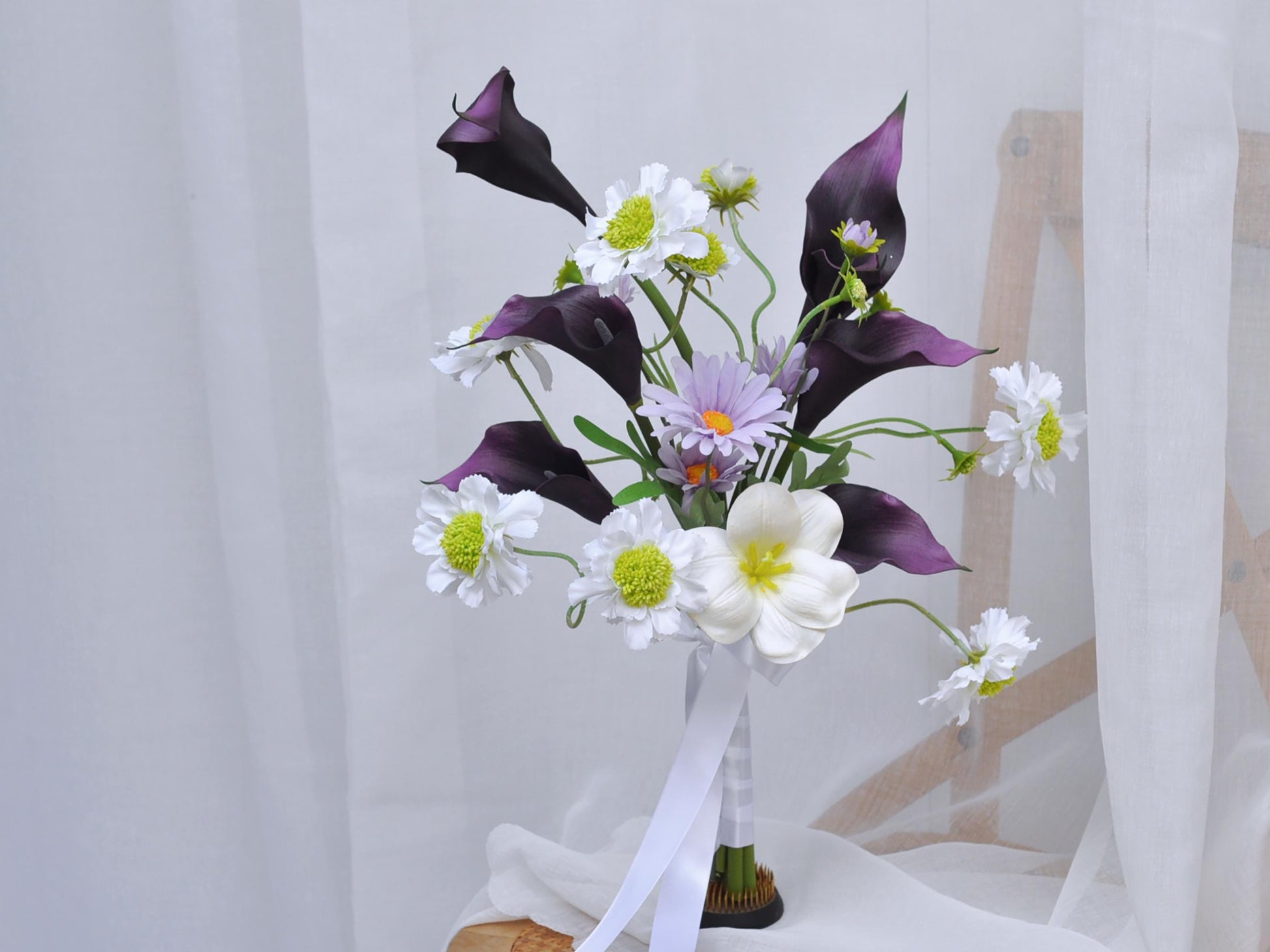 ❤ Versatile real touch silk daisy & calla lily bouquet for Weddings, Events & Home Decor