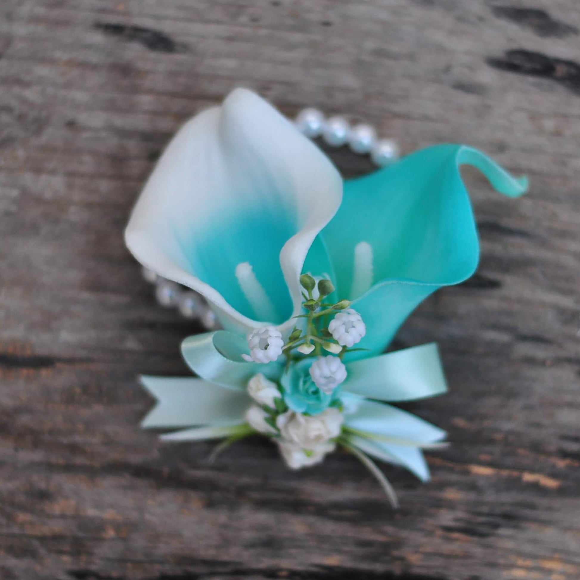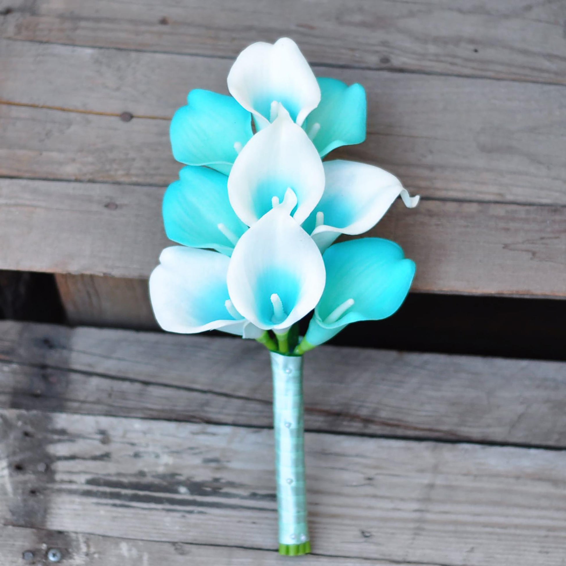 ❤This real touch cascading bouquet is made by tiffany blue calla lily.