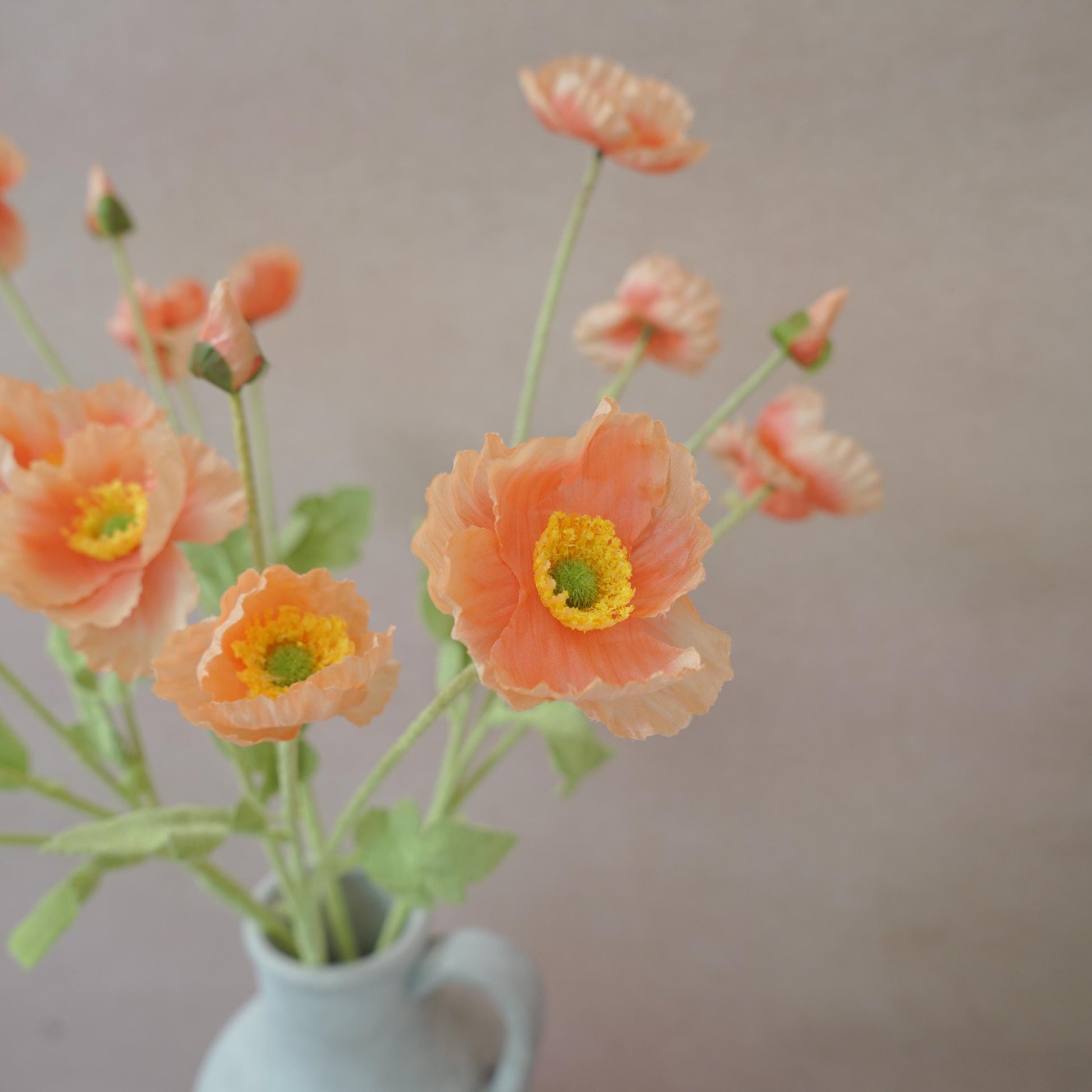 Coral Red Faux Poppy Flower - Silk Poppy Flower Stem, DIY Floral Arrangements, Wedding Centerpiece, Home Decor, Gift For Her,Flower Bouquet