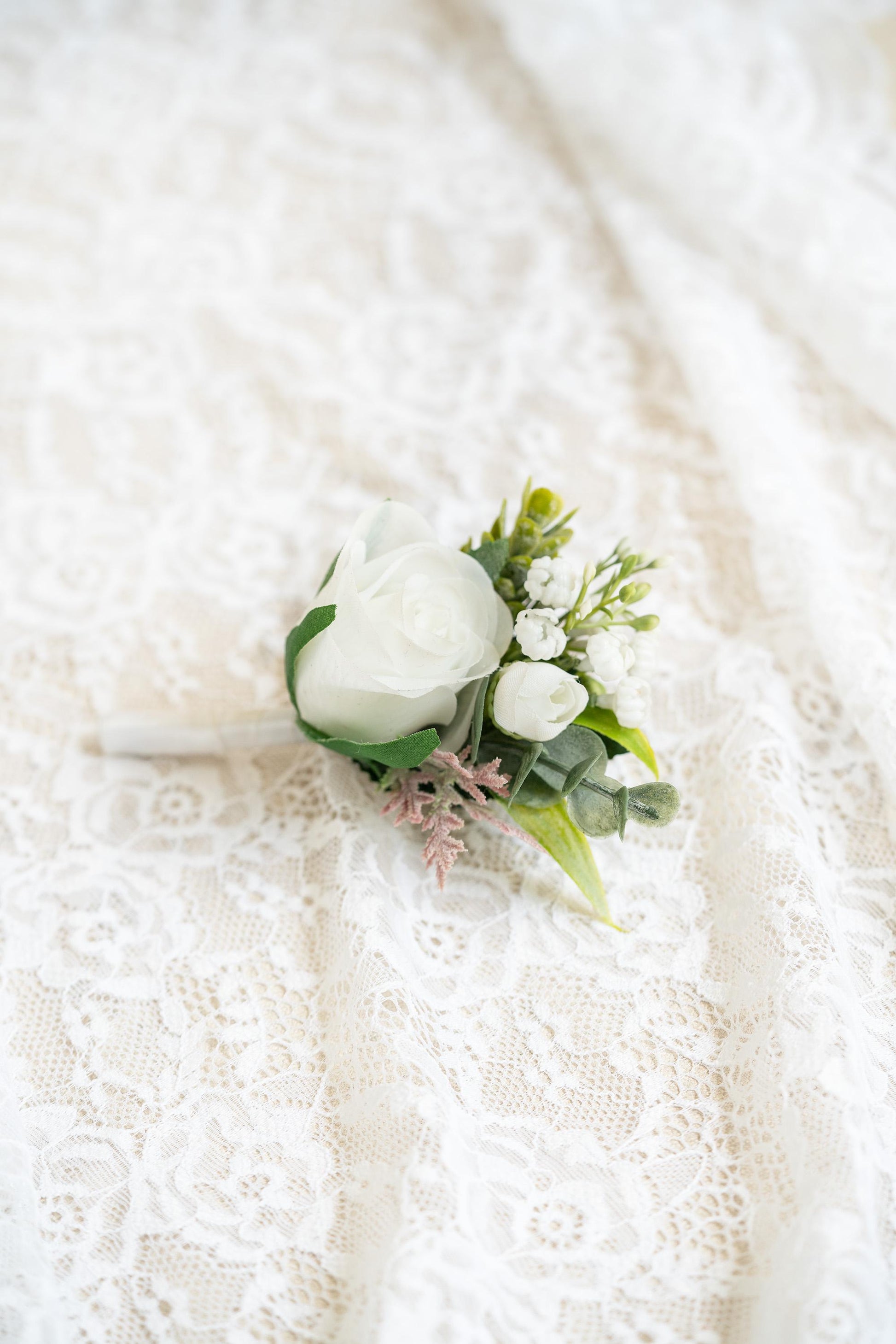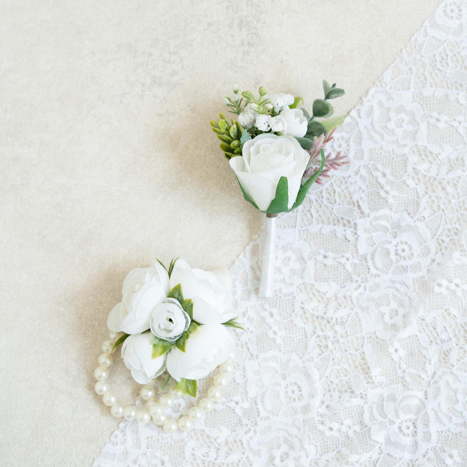 ❤This white corsage / boutonniere is made by rose flower and ranunculus flower. The price includes one corsage or one boutonniere.