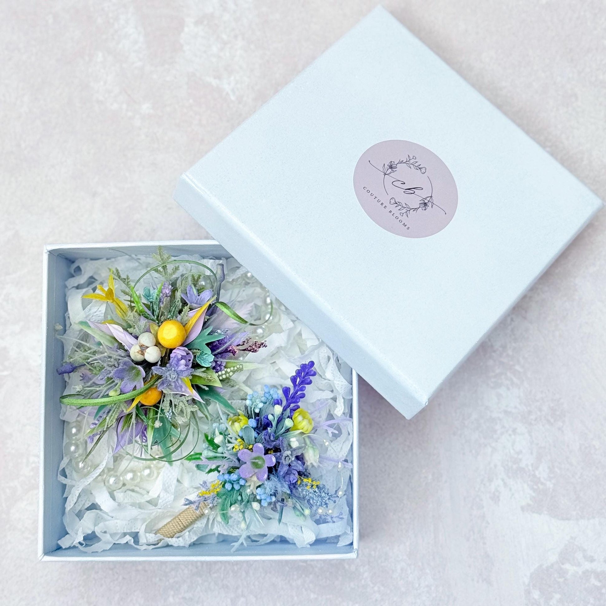 All matching items are available, including boutonnieres, corsages, chair decorations, swags, hair accessories, and home decorations. Please message us for a quote or Email us at coutureblooms.care@gmail.com.