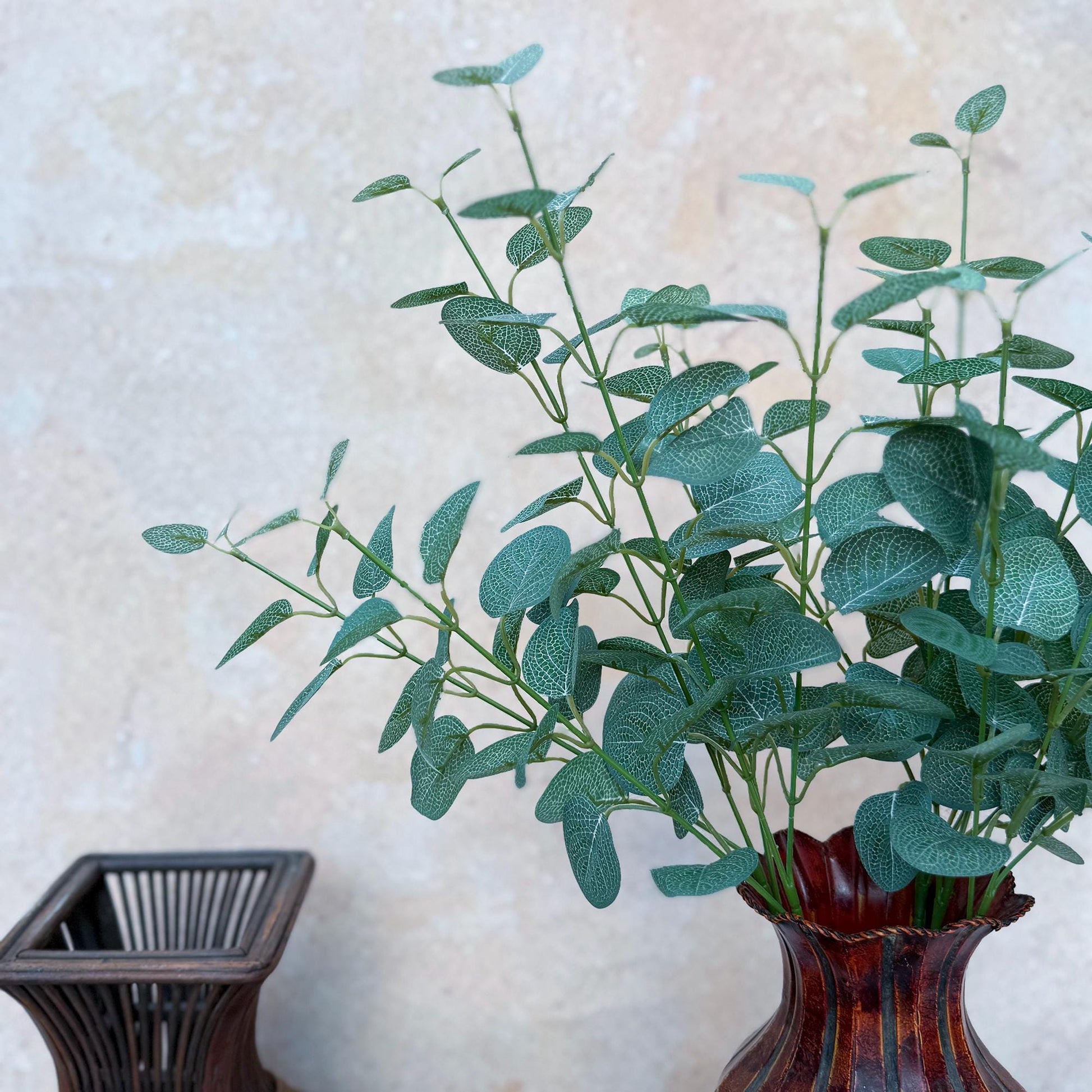These realistic, lifelike eucalyptus stems are crafted to closely mimic the look and feel of fresh greenery.