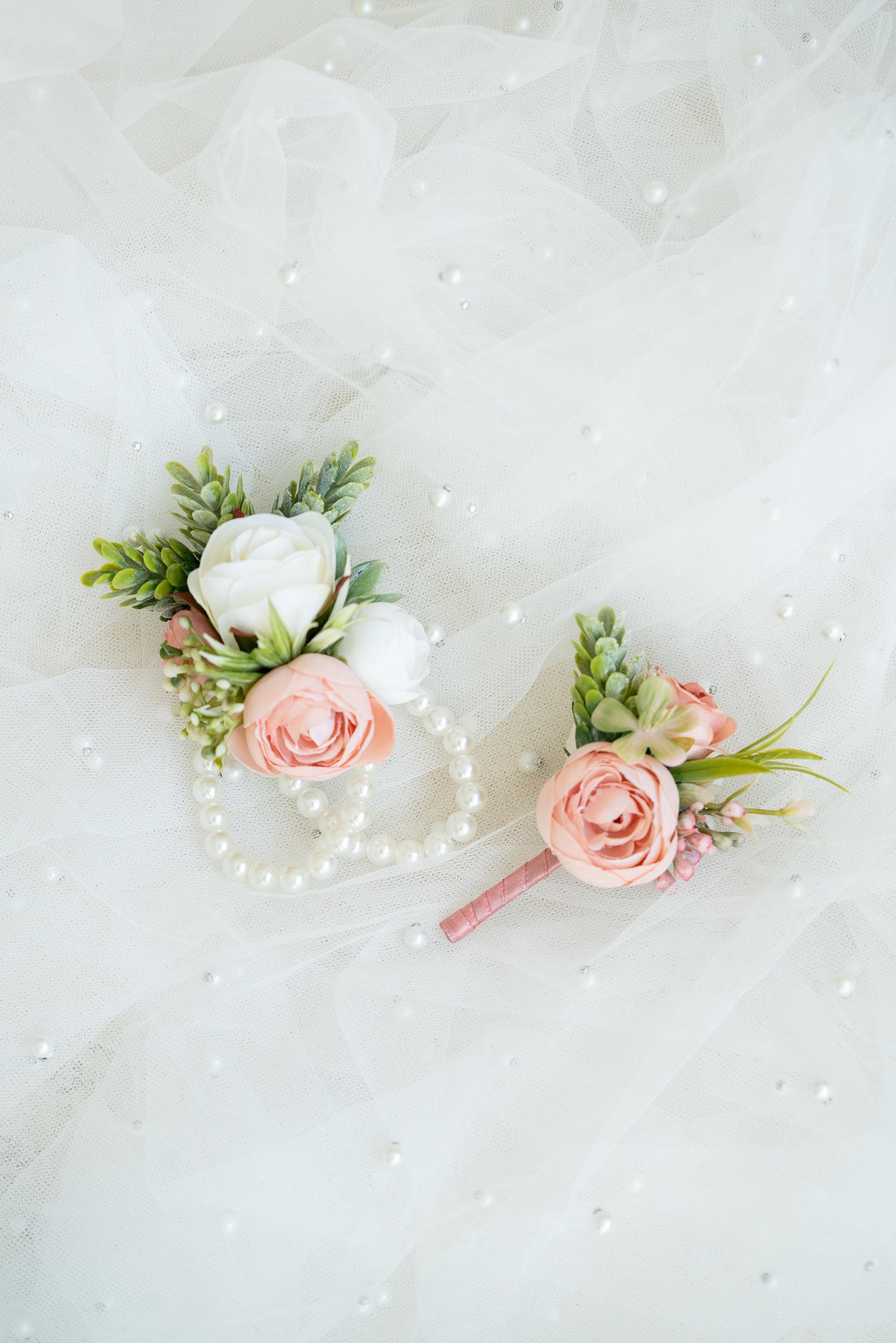 ❤This dusty rose corsage is made with rose flowers and silk ranunculus. The price includes one corsage or one boutonniere.