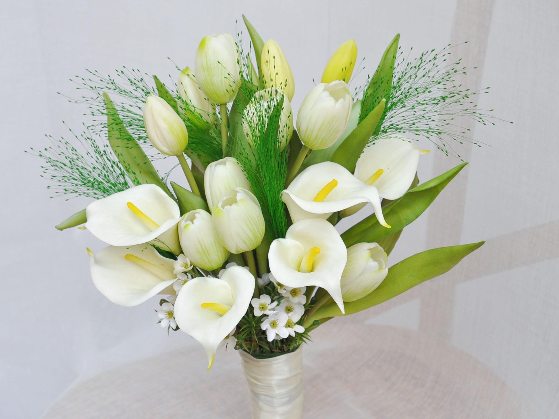 ❤ Versatile real touch tulip & calla lily & fountain grass bouquet for Weddings, Events & Home Decor