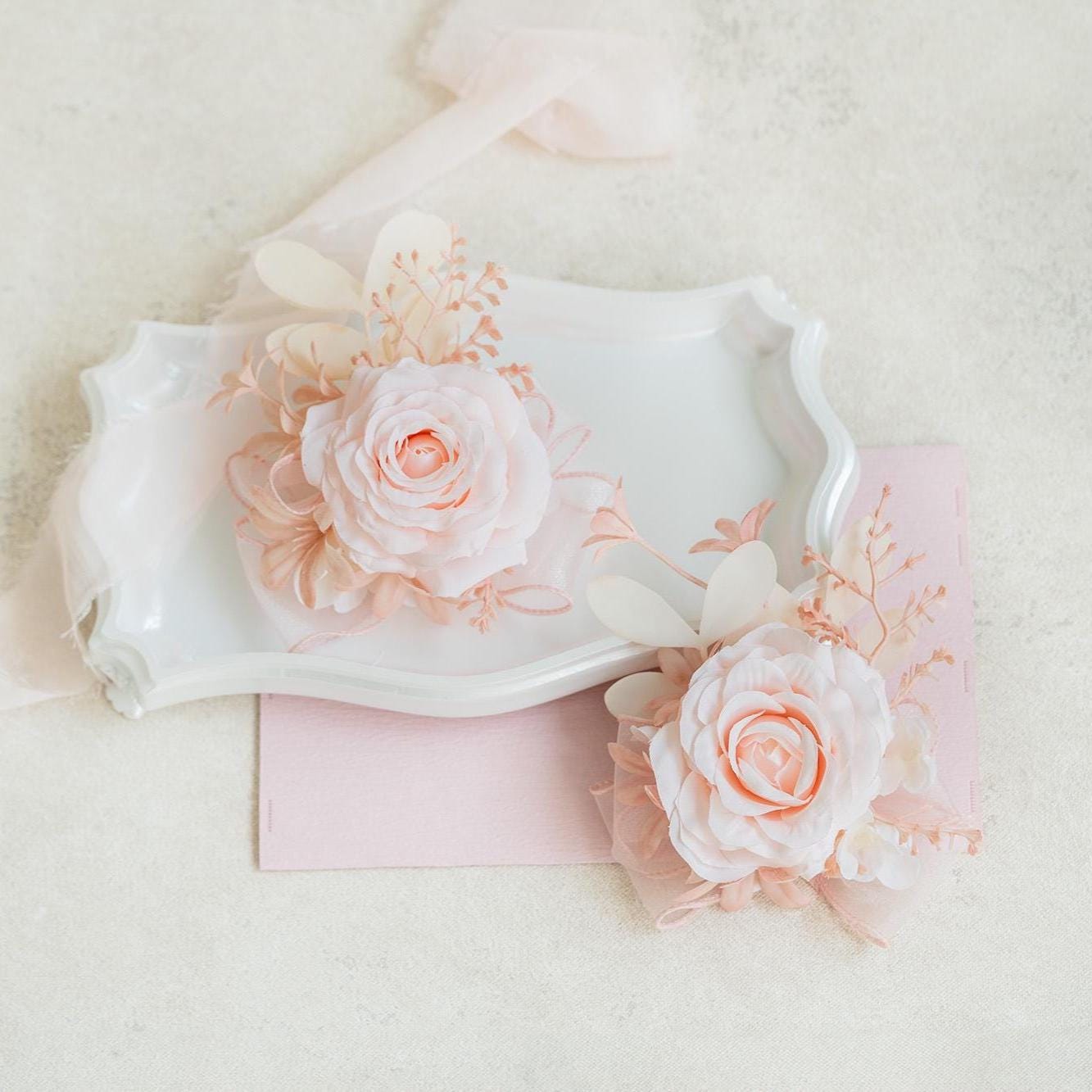 All matching items are available, including boutonnieres, corsages, chair decorations, swags, hair accessories, and home decorations. Please message us for a quote, or Email us at coutureblooms.care@gmail.com.