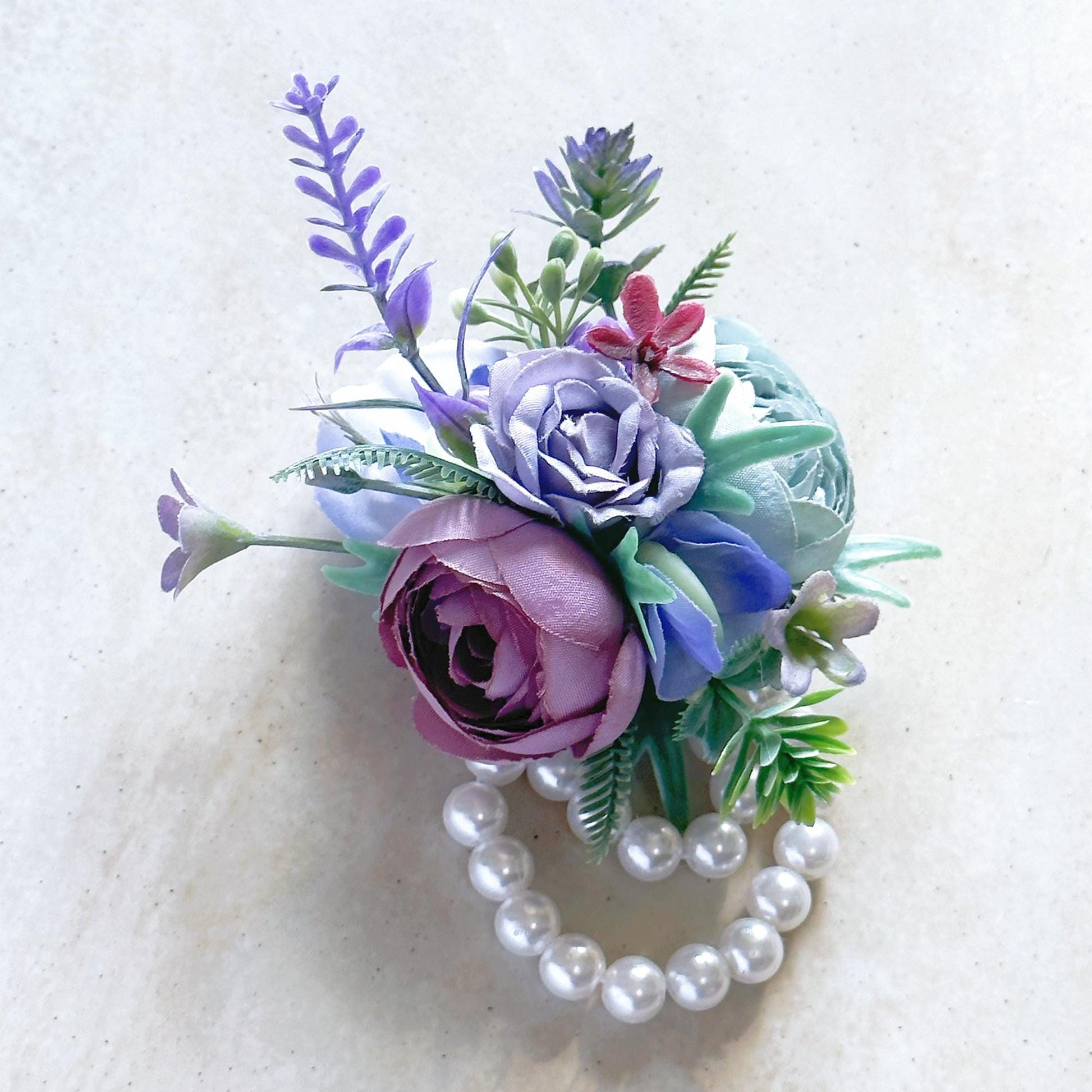 Monet's Garden Style Pearl Bracelet, Purple Wrist Corsage Gift For Her Garden Wedding, Bachelorette Party, Bridal Accessories Wedding Gift