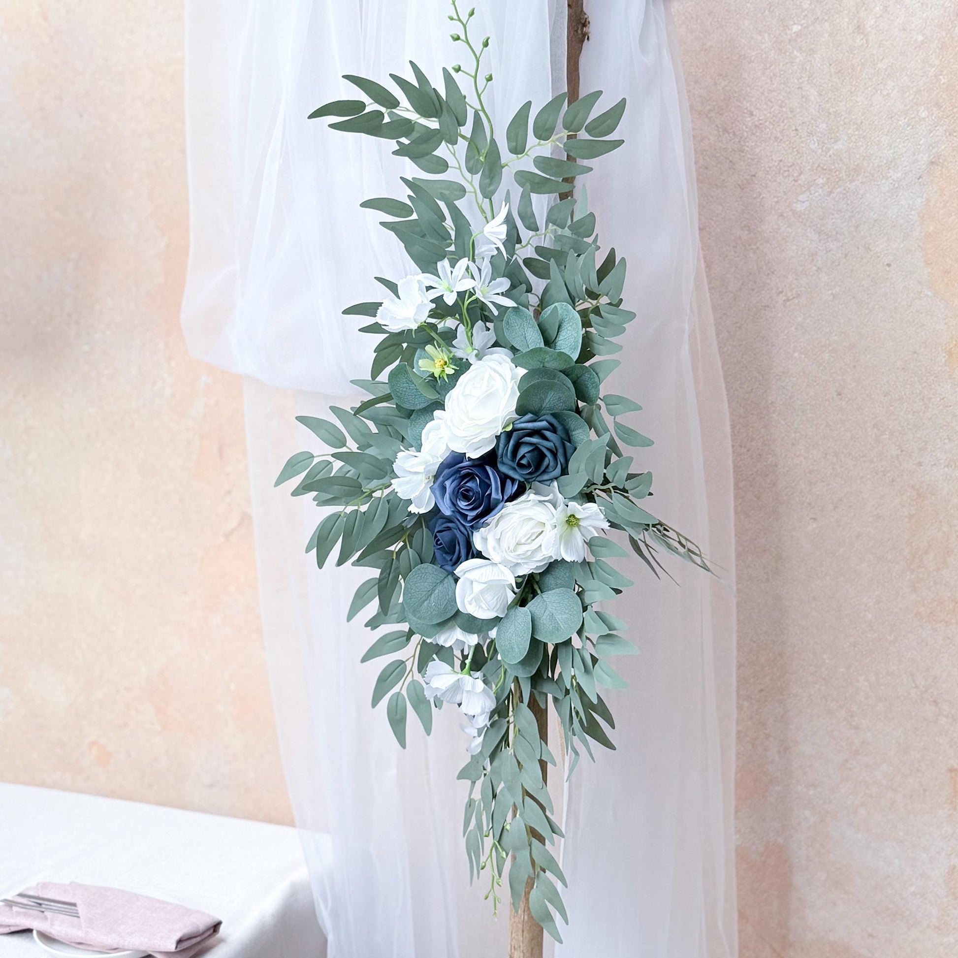 Nautical Navy Blue & White Rose Wedding Arch Arrangement, Rose Floral Arrangements, Wedding Ceremony Decor, Arch Garland, Beach Wedding Swag