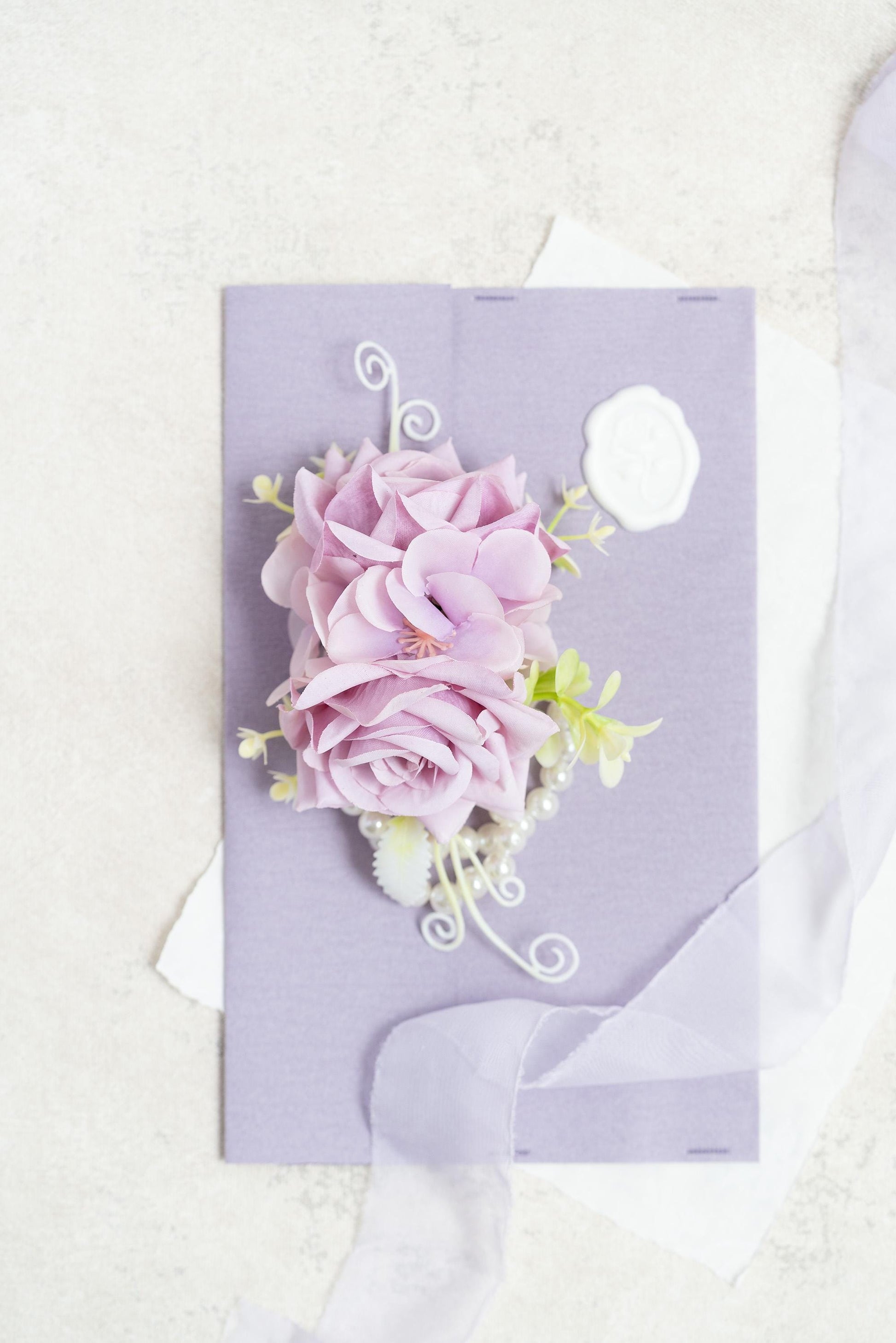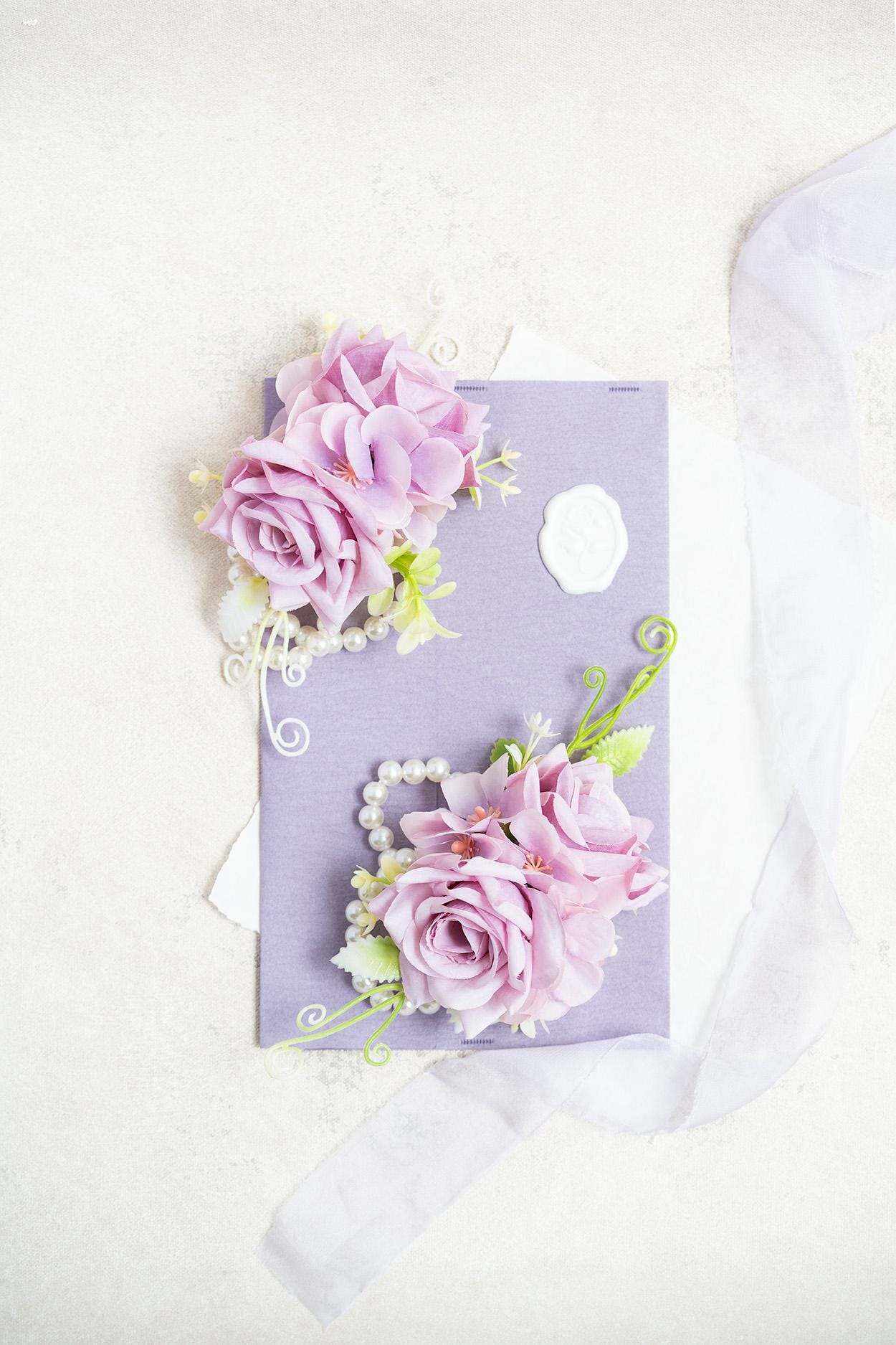 Personalized Light Purple Rose Pearl Bracelet Wrist Corsage Gift for Bridesmaid, Bridal Shower, Bridal Accessories, Prom Boutonniere Gift