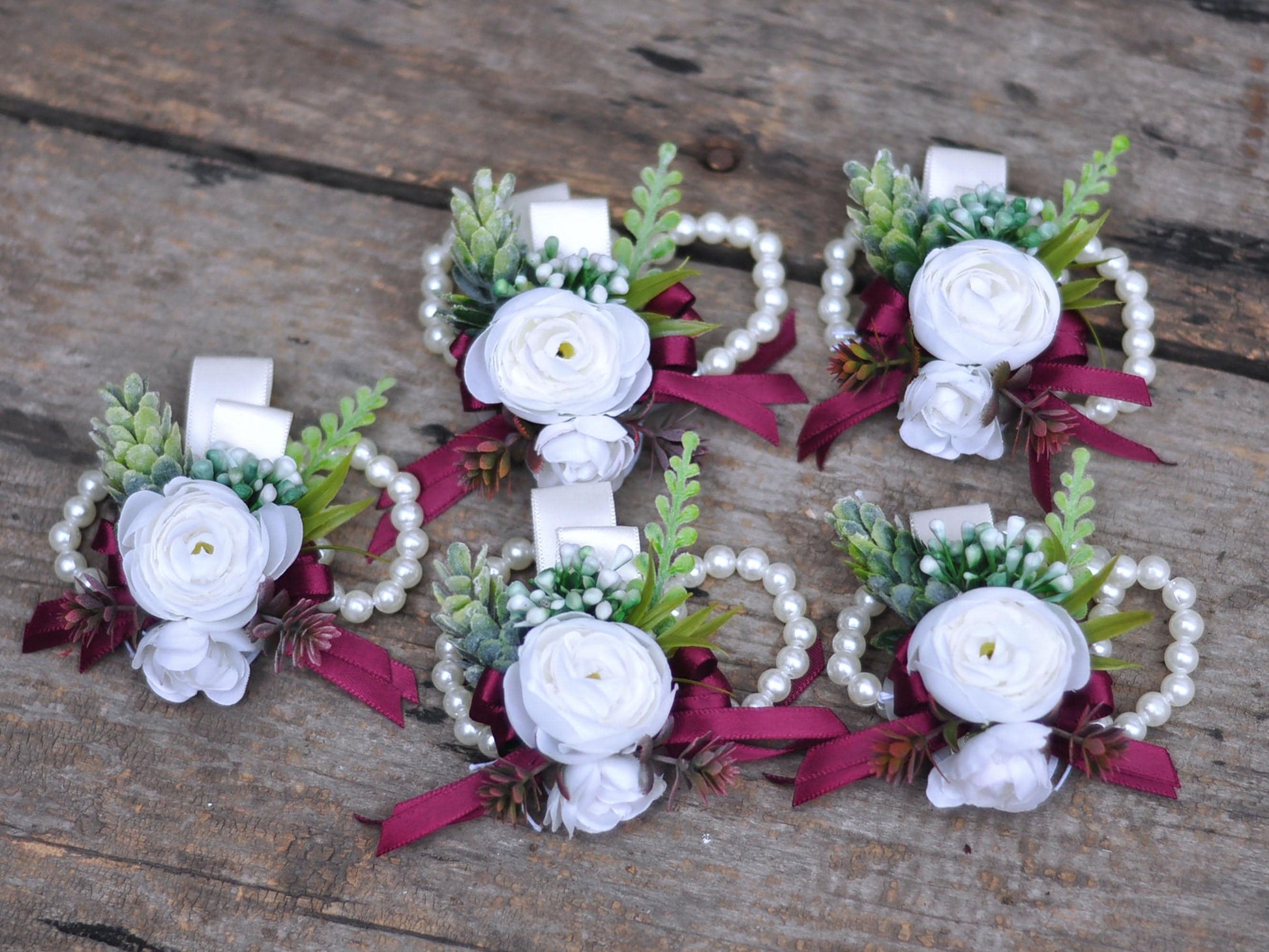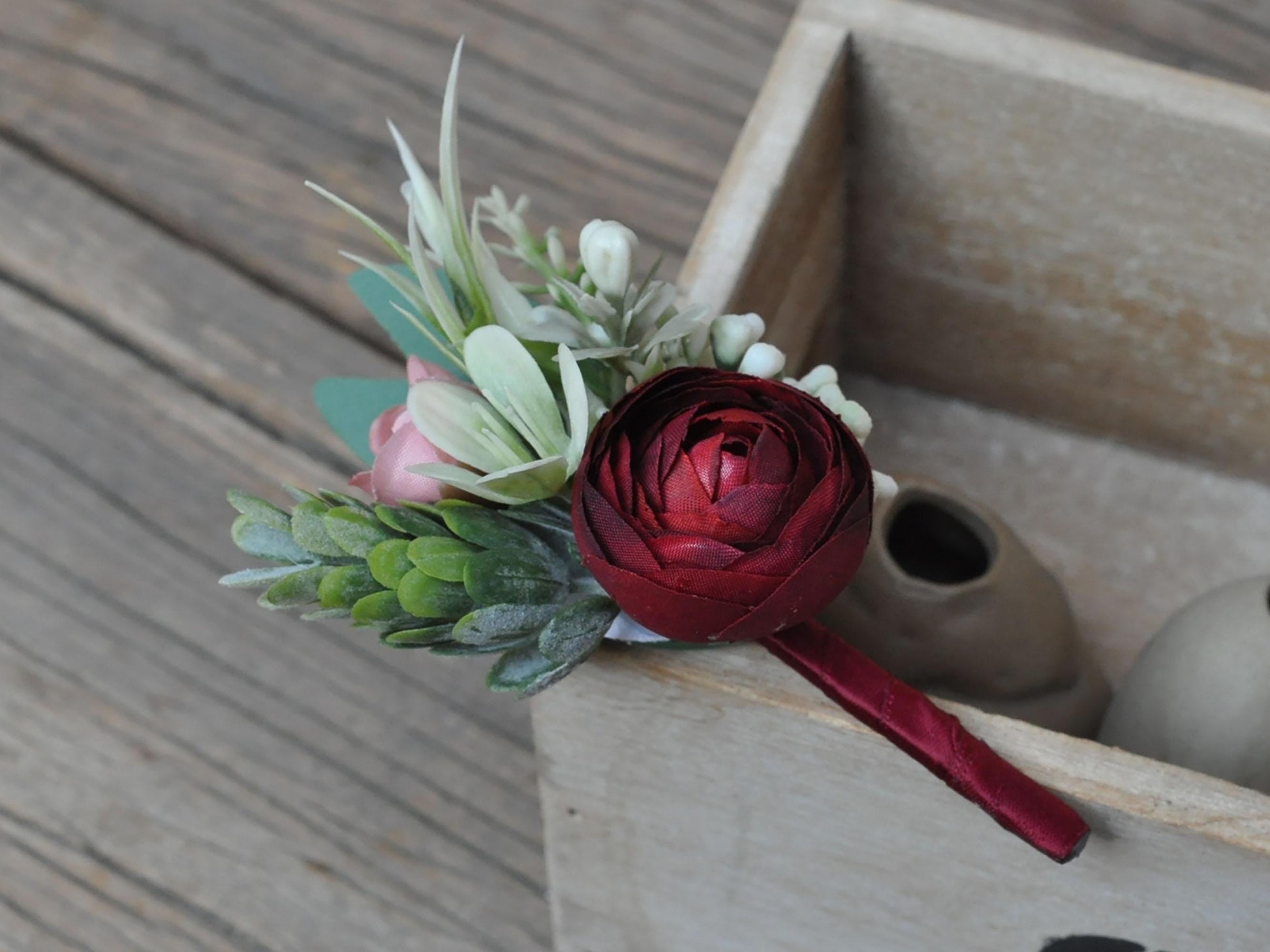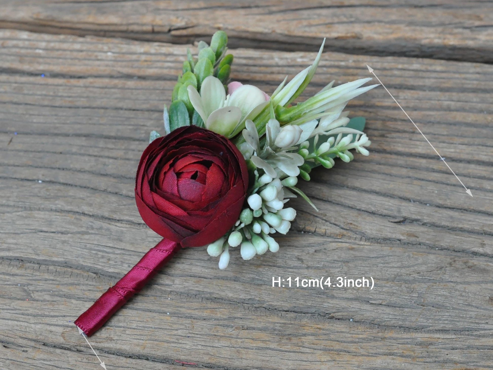 ❤This burgundy and white corsage / boutonniere is made by rose flower and ranunculus flower. The price includes one corsage or one boutonniere.