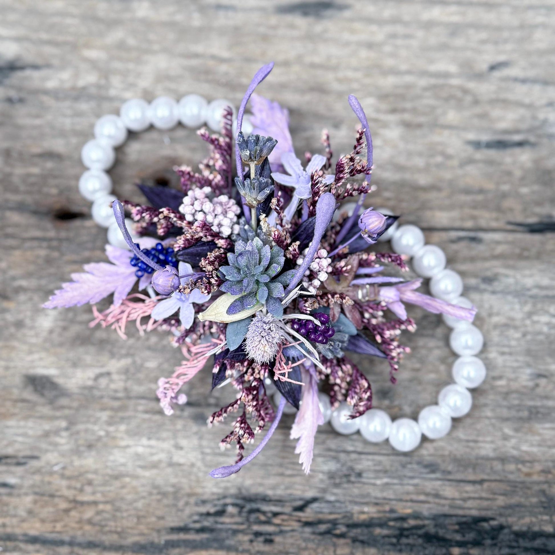 This romantic and lifelike corsage is thoughtfully handcrafted using real dried and preserved flowers, offering a naturally soft texture, rich detail, and subtle color variations that only genuine botanicals can provide. The unique combination of preserved foliage and florals gives it lasting beauty, while maintaining the delicate charm of freshly picked blooms.