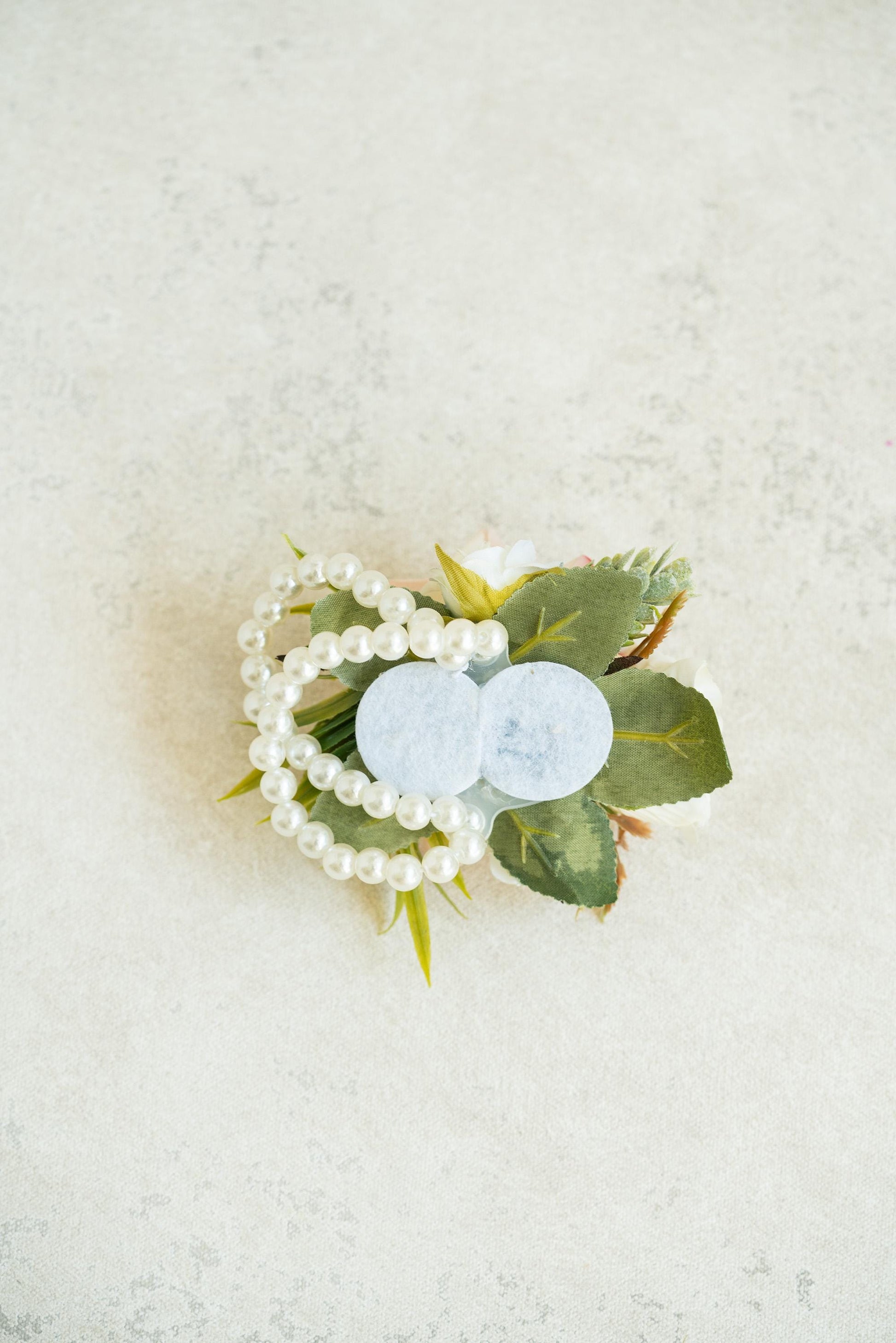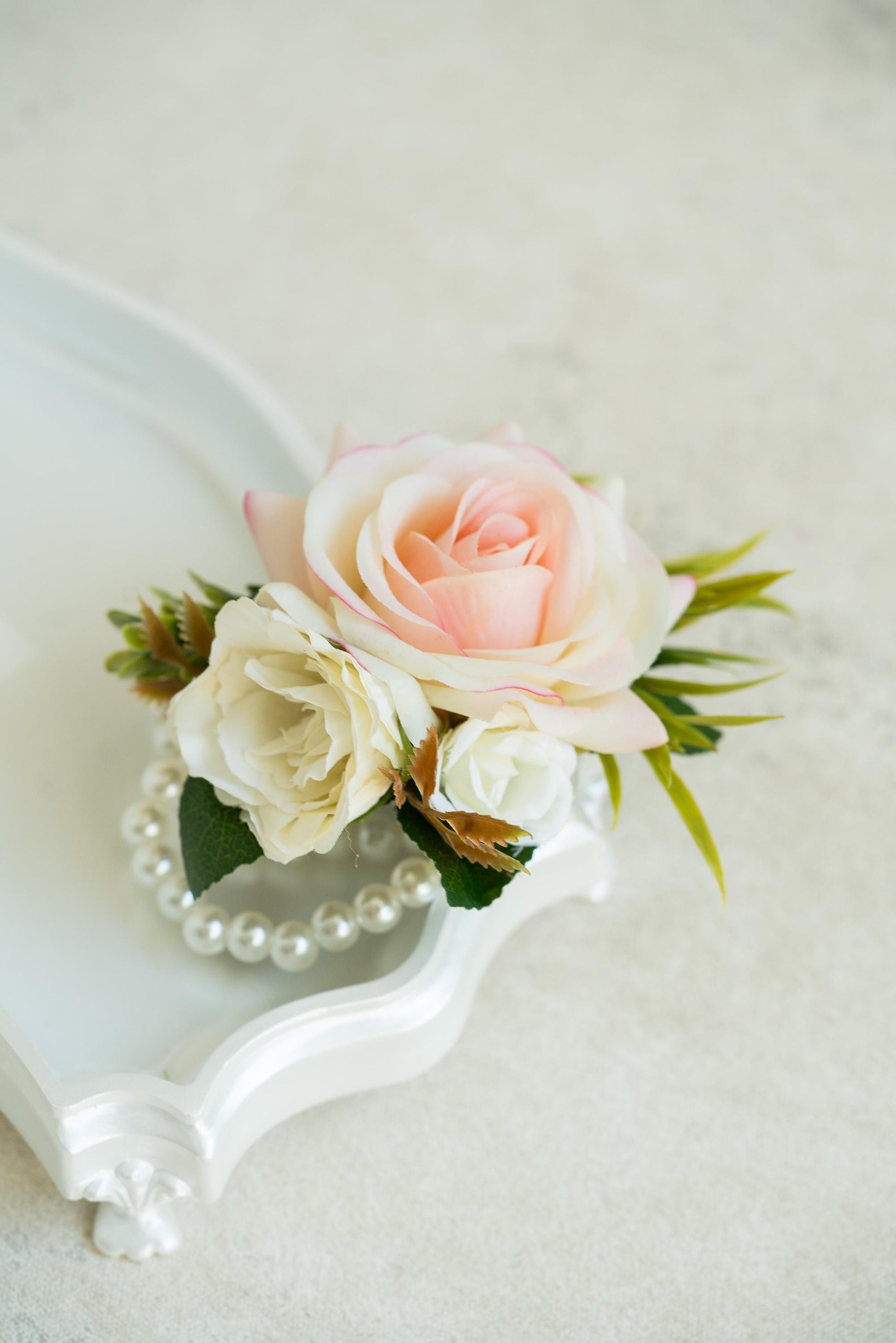 Real Touch Champagne Pink Rose Pearl Bracelet Wrist Corsage Gift For Her Mom, Prom, Bridesmaid Bridal Accessories, Boutonniere Wedding Gift