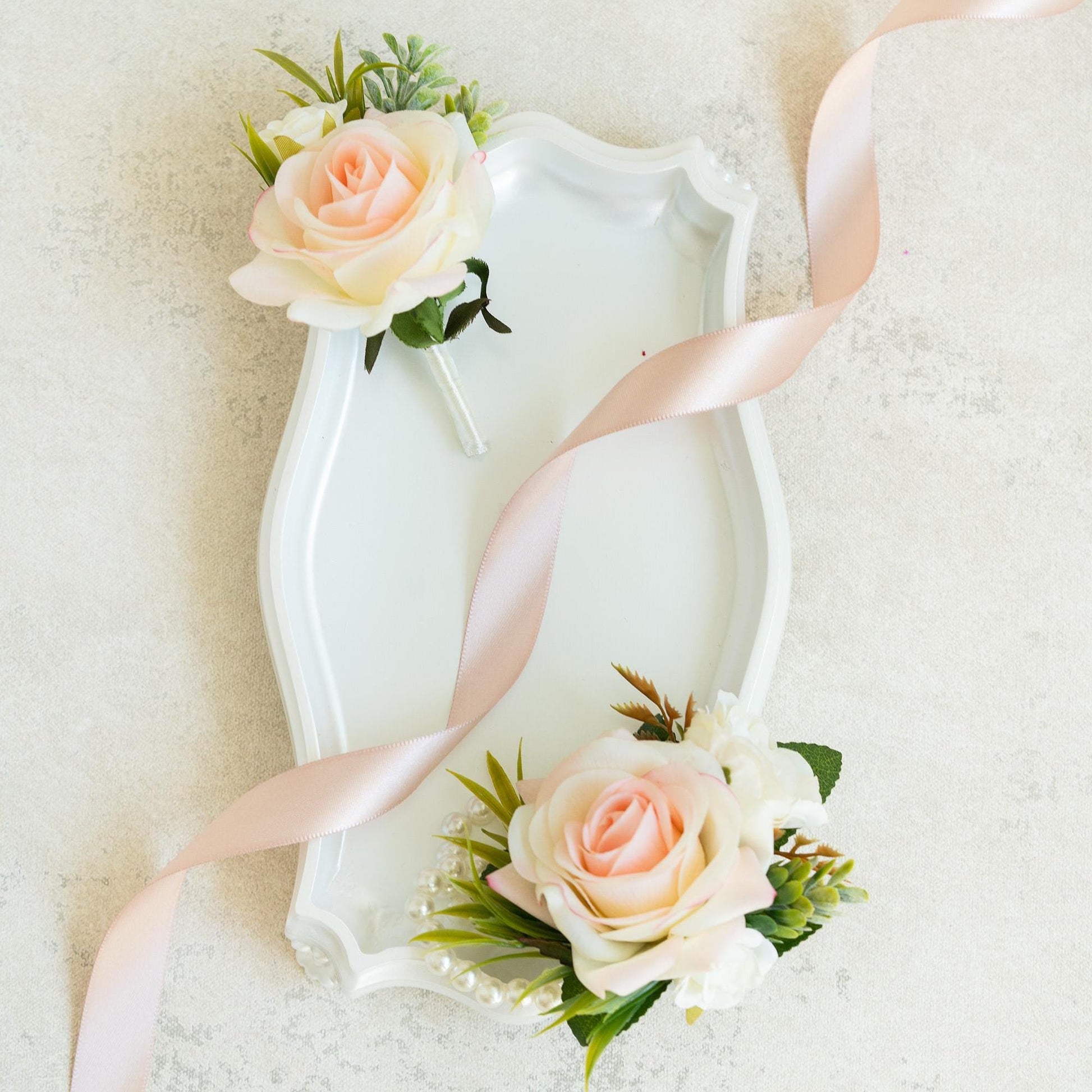 ❤This real touch champagne pink rose corsage is made with real touch rose flowers and rose bud wrapped by ribbon. The price includes one corsage or one boutonniere.