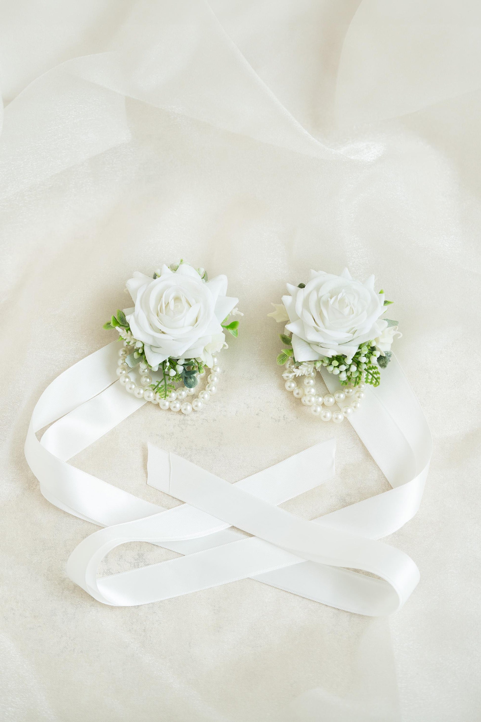 Real Touch White Rose Pearl Bracelet Wrist Corsage Gift for Her Bridesmaid, Prom Gift, Princess Wedding Bridal Accessories Gift, Boutonniere