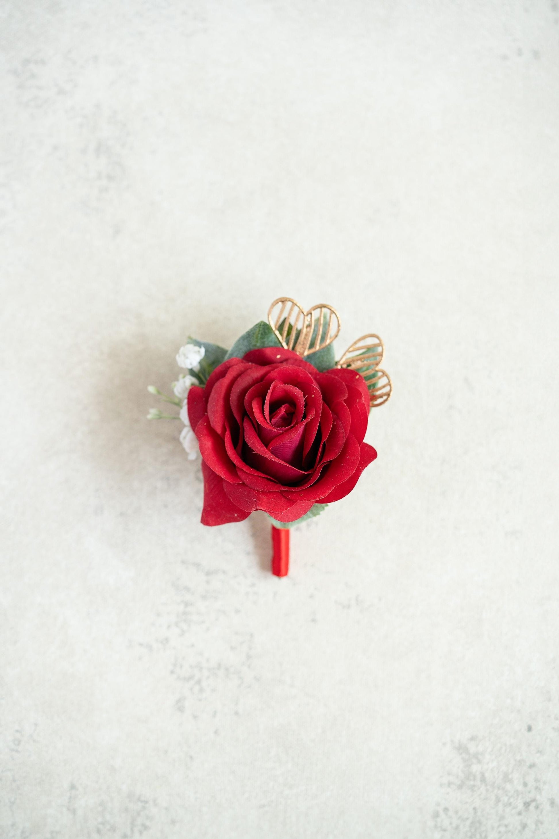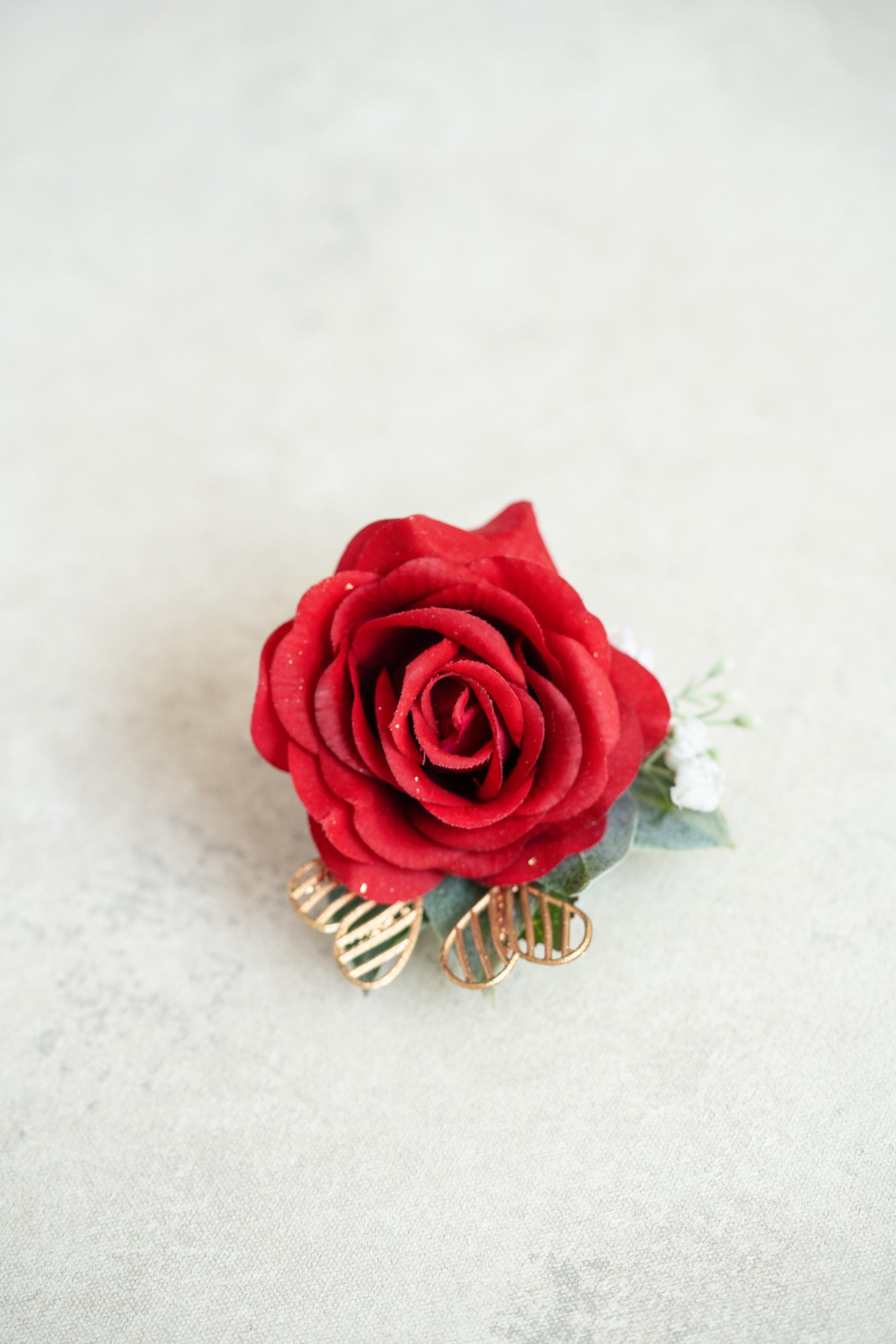 ❤ This gold & red corsage / boutonniere is made by rose flower. The price includes one corsage or one boutonniere.