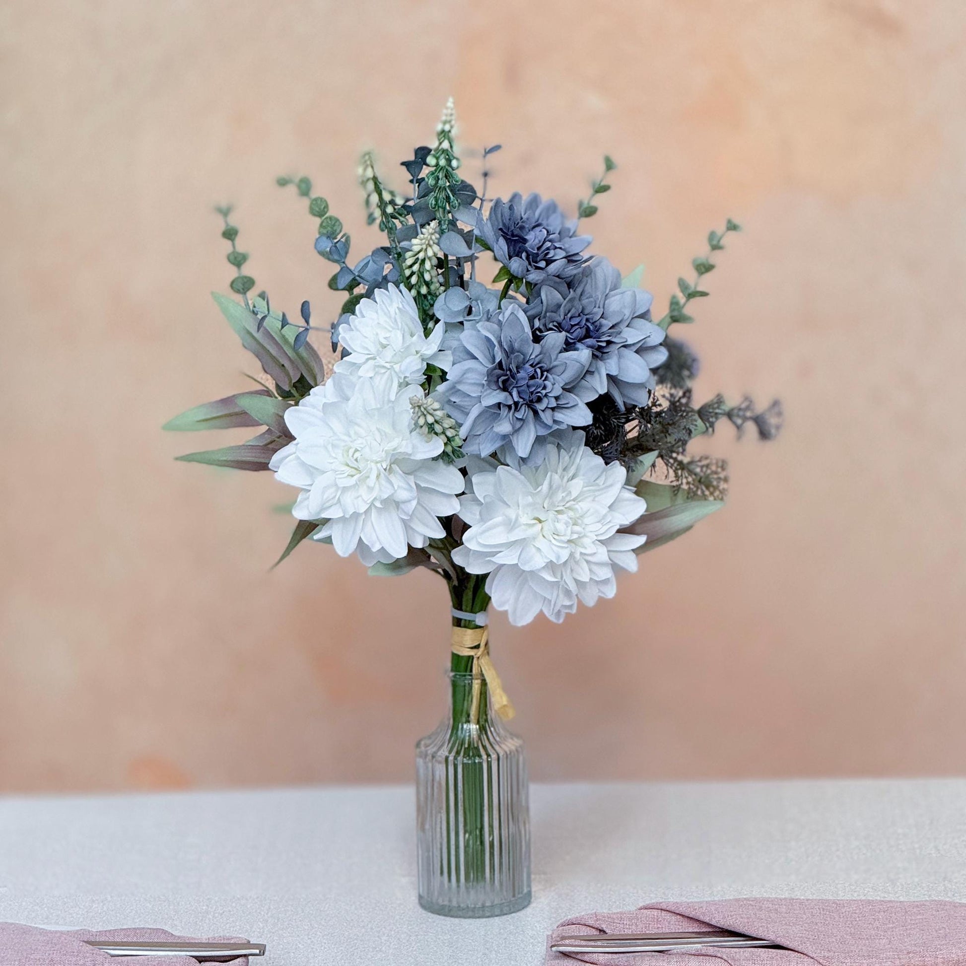 ❤This small dahlia and eucalyptus bouquet is made of silk dahlia and daisy and rustic eucalyptus and mixed with some wild flowers