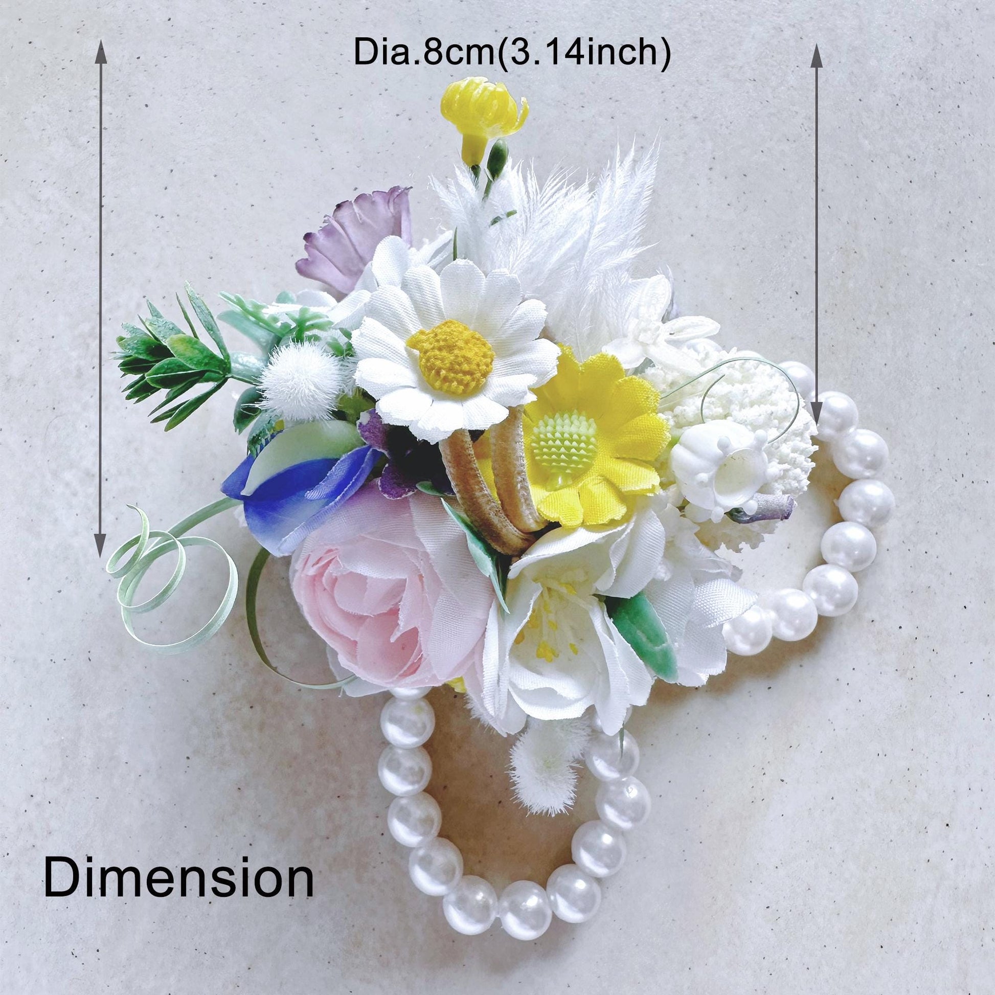 Wildflower Pearl Bracelet, White Feather Wrist Corsage Gift For Her Princess Wedding, Sunflower Corsage Gift For Mom, Prom, Bridesmaid Gift